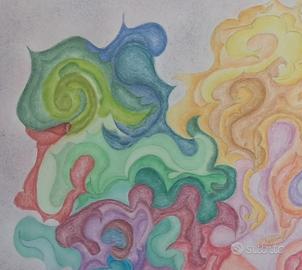 quadro con disegno astratto totalmente di mia creazione creato con matite colorate acquerellabili professionali con cornice, senza vetro. In perfette condizioni. L'opera potrebbe presentare delle piccole imperfezioni e questo è dovuto al fatto che è realizzato a mano. Dimensioni in cm: larghezza 34,5x lunghezza 46,5x profondità 1,5. Spedizione a mano o con corriere in tutta Italia ed estero. Pagamento da concordare