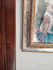 quadro con meravigliosa cornice antica con immagine su carta, soggetto Madonna con bambino...in ottime condizioni.