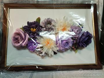 Quadro in legno 35 X 50, con fiori artificiali, molto particolare e unico.