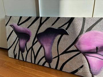 Quadro con fiori viola moderno I fiori sono in rilievo Lunghexza 1.50 m Altrzza 50 cm Ottimo stato