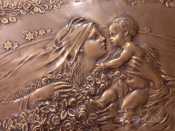 Quadro con immagine in rilievo in metallo 86x60 cornice in legno