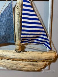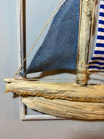 Realizzato a mano con legni di recupero dalla spiaggia. Completamente artigianale. Dimensioni 35 x 40 cm