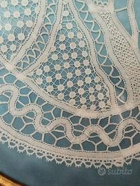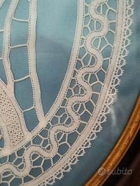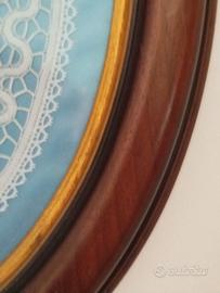 All'interno c'è una Madonna ricamata con la tecnica del chiacchierino e del tombolo tutto realizzato a mano.