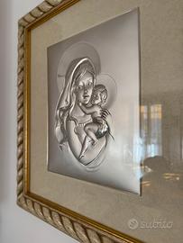 Quadro Madonna Con Bambino su Lastra Argento 925. Dimensioni: altezza 73 cm, lunghezza 67 cm