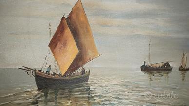 Cm. 85x 65 olio su tela quadro con cornice e barche