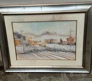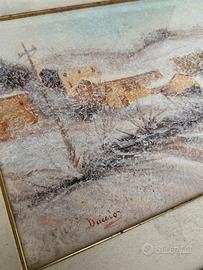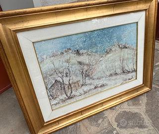 Quadro con paesaggio Montagne e neve, autore Duccio, misure diam. est. 88x66 - diam. int. 60x40 - Autore Duccio, Pittore Locale - è un quadro robusto e grande, con pittura ben eseguita - ritiro a Bologna pagamento in contanti