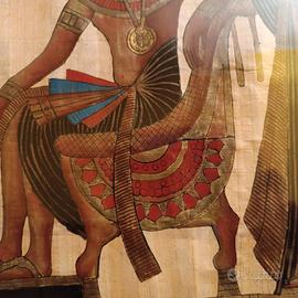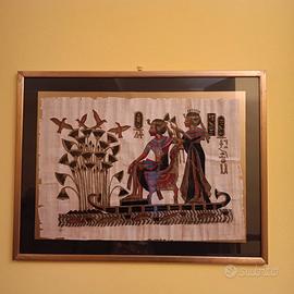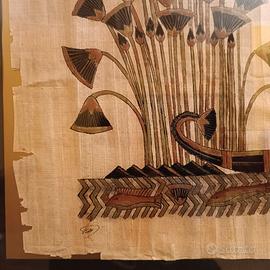 Quadro cornice dorata e vetro con sfondo nero che fa risaltare il bellissimo papiro, realizzato al Cairo, presso il museo egizio, seguendo tecniche antiche. Misure quadro cm 74,5 x 56.