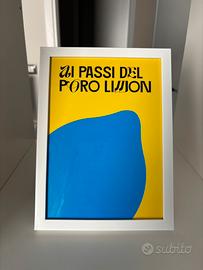 La scritta "ai passi del poro limon", in caratteri moderni e ben leggibili, si staglia su uno stondo giallo e blu che porta subito allegria e originalità.