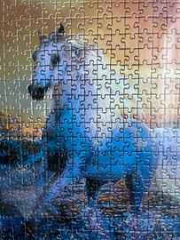 Quadro con puzzle incorniciato con cavallo. Perfetto per una cameretta. Dimensioni interno cornice 50x70cm