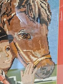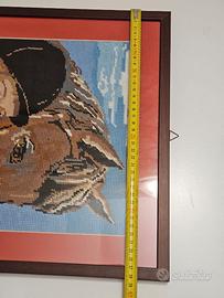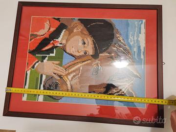 Quadro con ricamo fatto a mano cavallo e fantino
