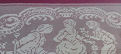 quadro con ricamo filet completo di vetro e cornice che contengono il manufatto dimensioni: larghezza cm 130 altezza cm 80