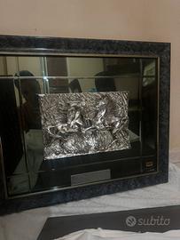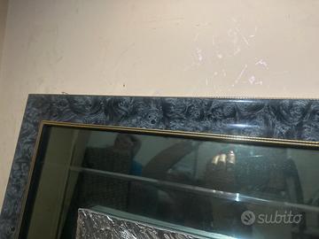 •Rilievo argentato applicato su specchio con cornice decorata nera e profili dorati