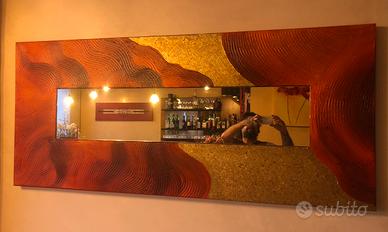 Quadro rettangolare con specchio moderno,lavorazione in rilievo colore rosso/oro misure cm 160/70 perfette condizioni