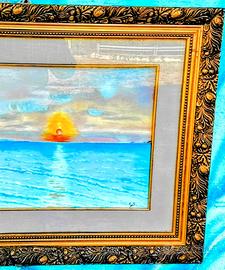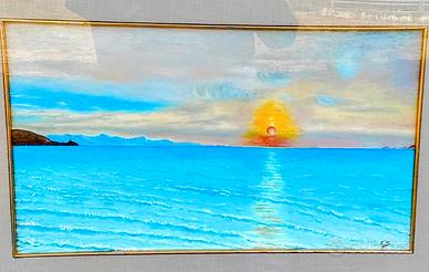 Quadro con tramonto dipinto a mano.