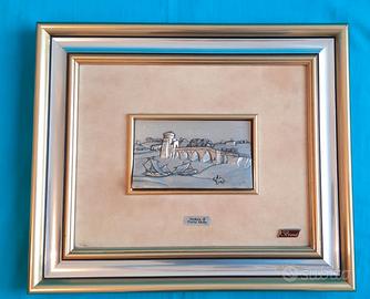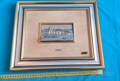 🖼️Quadro con Veduta Ponte Molle (Milvio) Roma; bassorilievo inciso su lastra argento e dorata.