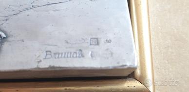 🖼️Painting with View of Ponte Molle (Milvio) Rome; bas-relief engraved on silver and gold plate.