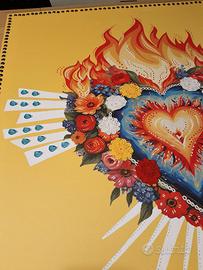 Quadro realizzato con tecnica mista, elaborazione digitale stampato su tela, con applicazioni di tessuto, rifinito con disegno a mano.