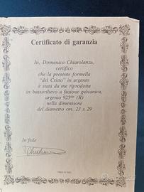 Bassorilievo a fusione galvanica in argento 925 “Cristo miracoloso” del Maestro Domenico Chiarolanza (Napoli 1949) su lastra d’argento/legno nero – misura bassorilievo 22 x 28,5 cm – misura totale quadro 31 x 41 cm – peso totale to di certificato di autenticità incollato sul retro