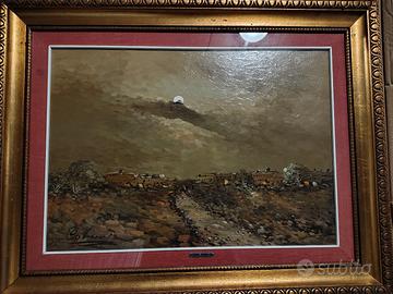 Vendo affascinante dipinto a olio su tela del maestro Colucci. L'opera rappresenta un paesaggio notturno/crepuscolare caratterizzato da una pennellata materica decisa e di grande atmosfera.
