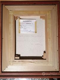 Opera del pittore Mario Cavani : “Nello studio del pittore” anno 1975 , con certificazione firmata dall’autore, tecnica mista su tela 30x40 cm . Doppia cornice in legno , l’esterna con vetro. Cornice interna : 41 cm x 31,5 cm , cornice esterna 62cm x 53cm . Stato di conservazione eccellente. Mario Cavani di Finale Emilia è più noto come grafico, grafico pubblicitario e fumettista, tuttavia si è cimentato anche nella pittura e nelle cronache risultano alcune sue “mostre personali” . Se anche non conoscete l'autore e volete solo decorare una parete, mi sembra che un dipinto vintage certificato di 50 anni fa , con una bella cornice , sia comunque migliore dei quadri "olio su tela industriale" con cornice (tipo : anatre selvatiche) che si trovano nei magazzini cinesi. La disponibilità teorica a spedire con Tutto Subito è stata selezionata. Purtroppo le misure del quadro sono tali che nemmeno ciò che loro classificano come "pacco Maxi" riesce a contenerlo . Non è detto che la spedizione attraverso di loro sia praticabile.
