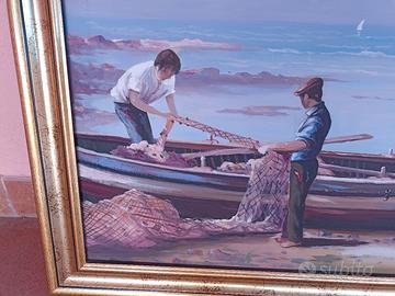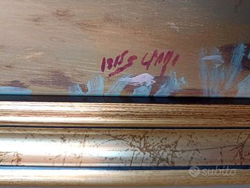 Dipinto ad olio su tela, firmato e datato 1991, raffigurante un luogo storico, simbolo della provincia di Palermo: Torre Pozzillo Formato importante 100x70. Cornice dorata, perfetta per ambienti istituzionali o professionali. Particolarmente indicato per: Studio notarile Studio legale Studio medico Uffici di rappresentanza Sale riunioni ✔ Tecnica: Olio su tela ✔ Dimensioni: 100 x 120 cm ✔ Firmato e datato 1991 ✔ Ottimo stato conservativo Chiedetemi ulteriori foto se interessati possibilità di pagamento in 3 rate