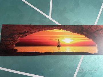 Regala alla tua casa un tocco di eleganza e calore con questo affascinante quadro da parete: una vera finestra aperta su un tramonto mozzafiato, dove il sole si riflette dolcemente sulle onde e una barca solitaria accompagna il tuo relax quotidiano.