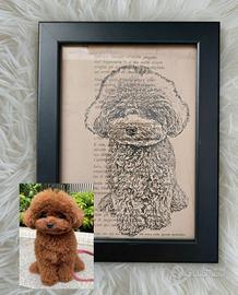 Quadri personalizzati animali cani gatti Dimensioni 13x18 compresa la cornice Posso creare su misura per te...non esitare a contattarmi!! I quadri vengono realizzati con tavoletta grafica e poi rifiniti con matita. Il foglio è stato preso da un antico libro Ottimo come regalo,regalo di Natale, bomboniera, per arredare casa o semplicemente per chi vuole il suo amico raffigurato in un quadretto..
