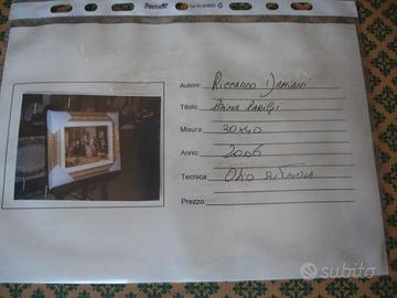 Quadro acquistato in Galleria d'Arte nel 2006 già incorniciato con cornice adeguata al livello del dipinto a mano che vedete nelle foto allegate. Espertize al retro: Olio su tavola di Riccardo Damiani. Non sono in grado di valutare l'opera nè fissare un prezzo giusto, non essendo esperto di Pittura perchè sono appassionato di Filatelia. Sto cedendo tutto per età e cedo al miglior offerente da privato con l'opzione "VISTO E PIACIUTO". Spedibile a cura e spese dell'acquirente, ma...preferirei RITIRO GRATUITO DI PERSONA. Grazie. Grazie per la partecipazione e vinca il più esperto lungimirante. Chiedetemi per per altre INFO e/o FOTO. Buona Asta