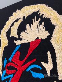 Quadro ricamato a mano con la tecnica del punchneedle, raffigurante David Bowie. Misure 42x42