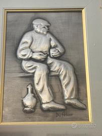 Quadro decorativo a bassorilievo raffigurante figura maschile, tecnica materica con effetto tridimensionale. Completo di cornice elegante. Ideale per arredamento vintage o ambienti particolari Misure 37x30 Prezzo trattabile