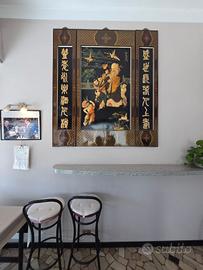 Vendo un magnifico quadro decorativo composto da tre pannelli, realizzato in legno massiccio con intarsi in giada.