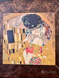 Elegante quadretto decorativo ispirato alla celebre opera “Il bacio” di Gustav Klimt, perfetto per aggiungere un tocco artistico e raffinato a qualsiasi ambiente. •Dimensioni totali: 24 x 24 cm •Dimensioni immagine interna: 14 x 14 cm •Condizioni: nuovo •Cornice in stile rustico effetto legno scuro, con lavorazione materica •Stampa dai colori vivaci con dettagli dorati Ideale per arredare soggiorno, camera da letto o come idea regalo.