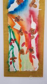 Quadro su tela "natura e vanità", con elementi naturali (foglie). Misure 130 x 50 cm