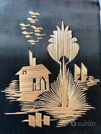 Quadro decorativo realizzato con materiali naturali con supporto in cartoncino . Misure del supporto 21 x 26,5 cm .