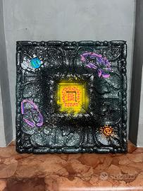 Vendi un pezzo unico di artigianato moderno! Questa non è una semplice cornice, ma un'opera d'arte tridimensionale interamente realizzata a mano che rappresenta il fascino e il mistero dell'universo. • Tecnica: Mix media (vernice spray e pennarelli acrilici) su base strutturata. • Soggetto: Una galassia vibrante con pianeti, nebulose viola e un cuore luminoso centrale che irradia luce (giallo neon). • Effetto Visivo: La cornice lavorata aggiunge una profondità incredibile all'opera, creando un effetto 3D che cambia a seconda dell'angolazione della luce. Le macchioline bianche (stelle) simulano perfettamente il firmamento. • Dimensioni: 20 x 20 cm – Perfetta per una scrivania, una mensola o da appendere per dare un tocco "space core" alla stanza. • Condizioni: Nuovo, pezzo unico creato da me. Ideale per amanti dell'astronomia, dell'arte urbana/street art o per chi cerca un regalo originale e non convenzionale.