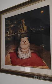 Quadro molto bello di Virginio Quarta olio su tela degli anni 1990 raffigurante un gatto con dietro come sfondo " La Costiera Amalfitana" le misure sono 90x90 le condizioni sono perfette.