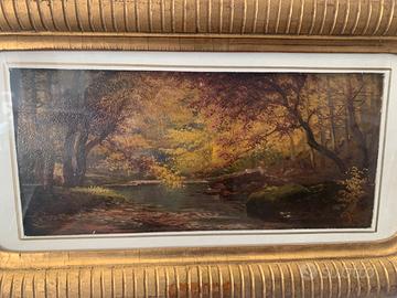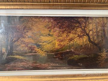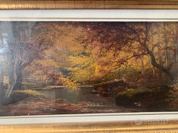Dipinto a olio del pittore Henry Marko’ Firenze 1855 Lavagna ( GE ) 1921 . Il dipinto rappresenta un meraviglioso bosco autunnale contornato da una splendida cornice dorata. Misura del dipinto 15x30 con cornice 26x45