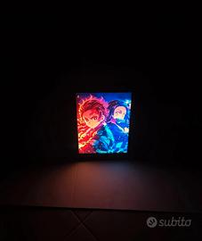 Quadretto con cornice retroilluminata e sensore di movimento (si accende solo al passaggio di una persona) con l'immagine di Tanjiro e Nezuko dell'anime "Demons Slayer". Cornice nera 22×27×4,5.