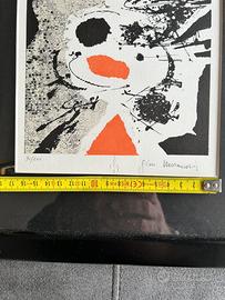 Litografia cm. 16,5x17,5 cm., nr. 95 di 100, firmata dall’autore, con timbro a secco della casa di stampa Centro Internazionale della Grafica di Venezia, con cornice nera in legno dimensioni 32,5x33,5. Parte di un trittico realizzato nel 1980, espressione dello spazialismo, di cui Gino Morandi è uno dei principali esponenti: lo spazio è una dimensione emotiva ed eidetica, definibile attraverso il segno. Le composizioni sono strutturate su un nucleo centrale curvilineo, una sorta di embrione da cui dipartono spinte centrifughe o centripete di forme-colore. Dagli anni ‘80 realizza immagini del suo universo immaginario, costituito da dinamiche forme di luce-colore, in cui indaga le possibilità timbriche e strutturali offerte dalle gamme cromatiche, per dimostrarne le capacità espressive e le valenze evocative. Nasce nel 1915 a Venezia, frequenta l’Istituto d’arte e l’Accademia. Fondamentali gli incontri con Guidi, Morandi, Vedova e De Luigi. Nel 1962 aggiunge una “s” finale al cognome.
