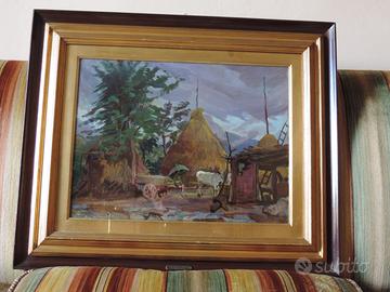 Quadro di Giulio Ghelarducci, olio su tavola, raffigurante "Carro sull'aia", delle seguenti dimensioni: cm 33x45.