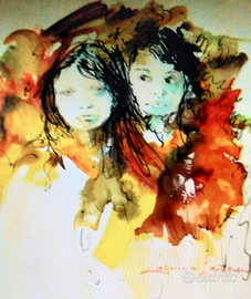 Prestigioso quadro di Luciana Gazzoni , molti i riconoscimenti con Opere importanti in prestigiose gallerie internazionali, anno nascita 1930 - Titolo Opera " Tristezza " Acquarello su Tela ,con certificato di garanzia , Misure senza cornice : 50 X 60 ,firmato anche sul retro.,