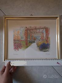 - Raffigura un giardino incantevole con un pergolato fiorito.