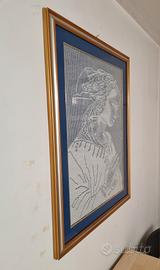 Quadro di 95 x 70 raffigurante Madonna che prega, fatta ad uncinetto filet. Solo consegna diretta.