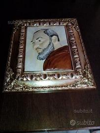 Quadro di Padre Pio cornice in legno colore foglia argento e oro, misura 38 di larghezza x 45 di altezza decorato a mano.Vendo x realizzato....