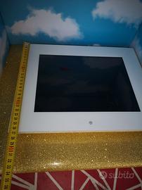 Vendo monitor/schermo digitale dal design contemporaneo, cornice bianca lucida, ideale per utilizzo domestico o professionale come schermo secondario, cornice digitale, monitor per impianti di sicurezza, presentazioni, ecc.
