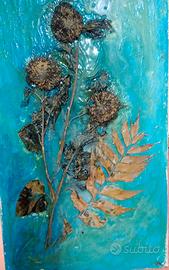 quadro dipinto con colori acrilici su tela,cm 40 x80,con inserimento di fiori veri,pezzo unico e originale dell'artista Tonino Alfonso!