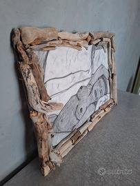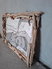 55x38cm.disegno carboncino cornice.realizzata con legno naturale