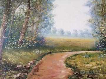 Quadro dipinto a mano olio su tela - c/cornice - senza vetro - paesaggio bosco veneto con certificato originale - misure cm.137 x cm.67 - Eccellenti condizioni.