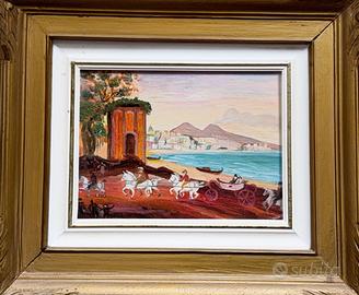 Quadro dipinto a mano paesaggio Napoli Vesuvio