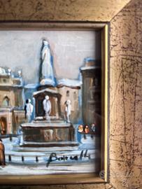 Quadro decorativo dipinto a mano raffigurante una piazza italiana con fontana e edificio storico.